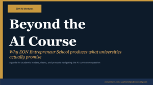 IRVINE, CALIFORNIA — March 2, 2026 — EON AI Ventures, alongside EON Reality, proudly announces the groundbreaking EON Entrepreneur School, a transformative 90-day program that reshapes the traditional approach to AI education. Unlike conventional AI courses, which focus solely on theory, this program equips participants with the tools and methodologies to transform AI into an engine of innovation, delivering commercially launched ventures in under three months. Built on EON’s VibeFlow structured AI-assisted development methodology, the program is a direct response to the increasing demand for applied AI skills and tangible economic outcomes. More details are explained in the EON Beyond The AI Course white paper.